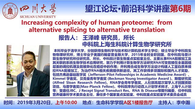 中科院上海生科院计算生物学研究所王泽峰所长3月20日学术报告